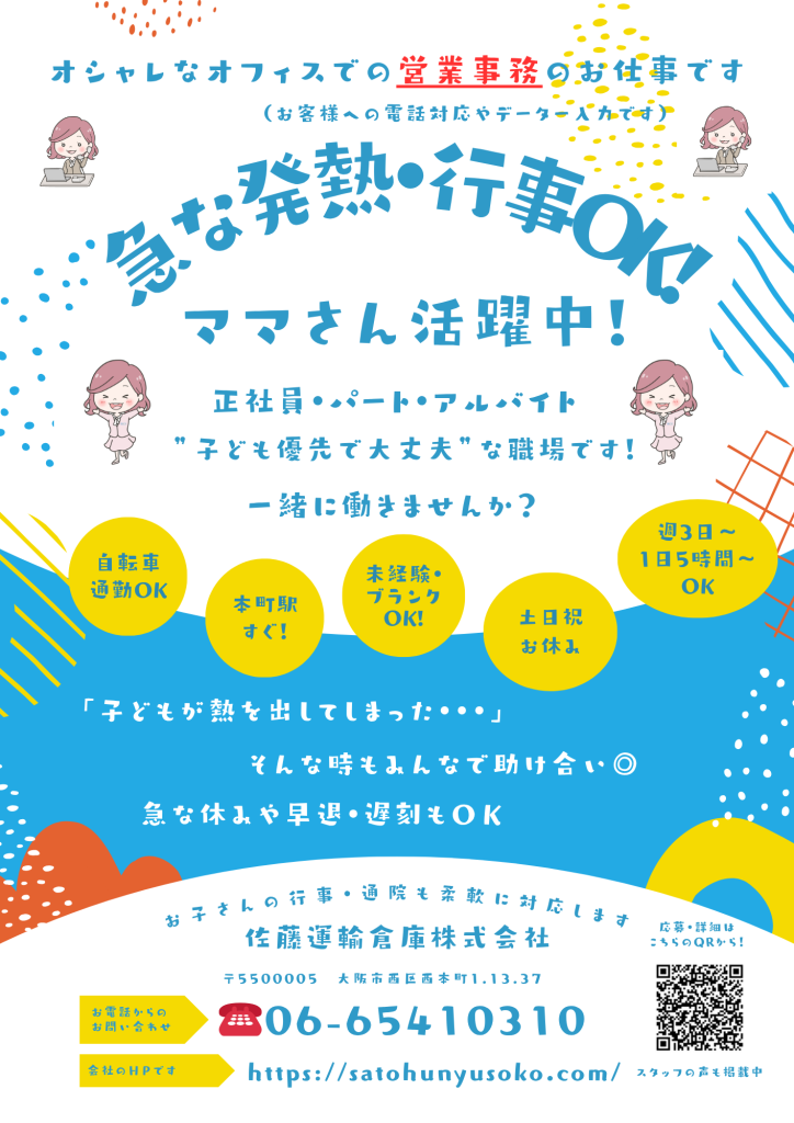 HOME トラック手配 独自のトラック手配フロー 運送パートナー様募集 導入事例 上下水道資材の運送 上下水道資材一覧 サポートの流れ 会社案内 代表挨拶 企業理念・基本方針 事業案内 会社概要 組織図 アクセス 沿革 当社の取り組み 社員紹介 採用情報 NEWS/BLOG メーカー様へのご案内 お問い合わせ 「絶対手配」の秘密をのぞいてみる 「絶対手配」の秘密をのぞいてみる 24時間365日受付中06-6541-0310 お見積もり・資料送付お問い合わせ ホーム NEWS/BLOG BLOG ママさん活躍中!一緒に働きましょう! NEWS/BLOG/メーカー様へのご案内 ママさん活躍中!一緒に働きましょう! 2025.10.28BLOG 【絶対手配®】佐藤運輸倉庫の松沢尚浩でございます。 いつも本当にありがとうございます。 以下の求人チラシを作成し、大阪市内でポスティングを実施する事となりました。 ぜひ、一緒に働きましょう! 一覧 次の記事 »